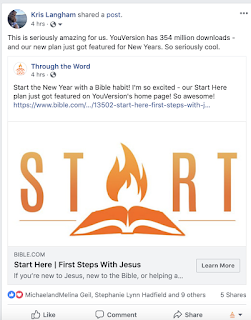 Happy New Year TTW! New Year’s day is the perfect time to start a Bible habit – or to share one. We made it easy. Just open facebook.com/throughtheword and pick one of our New Year’s Day posts to share. Add a comment about what a Bible habit with TTW means to you – and voila – you can give your friends a Bible habit. It’s the best time all year to share it. It’s takes just a few seconds – but it could change a life!